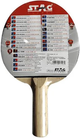 Begin your table tennis journey with the Stag Global 1-Star Table Tennis Racket, a perfect choice for those new to the game. Thoughtfully crafted for beginners, this entry-level table tennis racket focuses on control, stability, and comfort to help you build a solid foundation in ping pong. This Stag one star table tennis racket is rated Speed: 50 / Spin: 70 / Control: 97, offering a balanced combination for players developing their basic strokes and serves. Its high control rating ensures consistent and accurate shots, making it the ideal companion for practice sessions and casual games. The classic red and black design gives the racket a professional appearance, while its durable build ensures it can withstand regular use. Featuring a sturdy wooden handle, this wooden handle table tennis racket provides a secure and comfortable grip for confident play. Its construction is designed to enhance hand control and reduce wrist fatigue, which is especially important for new players refining their technique. Lightweight and easy to maneuver, this training table tennis paddle is suitable for both recreational players and beginner athletes. As part of the Stag B2C sports gear range, it upholds the brand’s commitment to quality, performance, and affordability. Whether you're practicing at home, in school, or at a club, the Stag Global one star racket is your reliable partner in learning the fundamentals of the game.