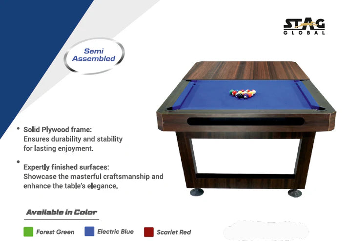 Stag Global 3 in 1 Multi-Functional Pool Table with Table Tennis Table and Dinning Table || 4 feet x 8 feet || Wooden Table || All Accessories Included
