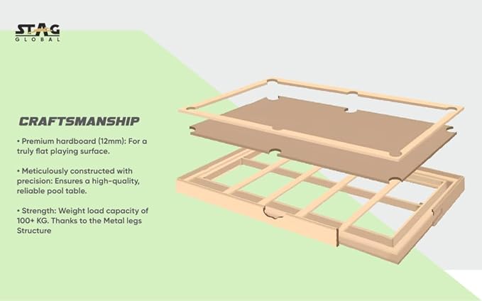 Elevate your gaming experience with the Stag Global Professional Pool Table, a stunning blend of classic design, premium craftsmanship, and superior functionality. Designed for true billiards enthusiasts, this 4 feet x 8 feet wooden pool table is a standout piece in any game room, home, office, club, or recreational space.